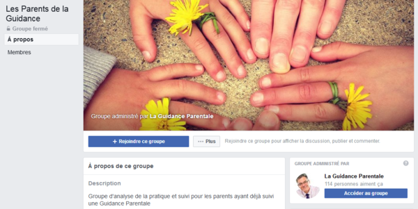 Boîte à Outils - Parentalité Le Groupe Facebook – Les parents de la Guidance Un groupe fermé d'analyse de la pratique et suivi pour les parents ayant déjà suivi une Guidance Parentale. Lire la suite